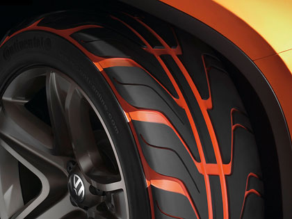 Так как концепт Tiguan является новой разработкой, дизайнеры также вели поиск новых решений в области шин. 19-дюймовые шины для этих прототипов были разработаны компанией Continental. Отличительная особенность: на основании протектора нанесена оранжевая радиальная полоса, цвет которой совпадает с цветом кузова концепта Tiguan. Причем радиальная полоса не просто нанесена краской, оранжевый цвет проникает в слой резины, как своеобразный «запеченный внутрь» компонент каркаса шины. Видимые сбоку оранжевые полосы подчеркивают размеры шин. При этом, 19-дюймовые легкосплавные колесные диски, окрашенные в тот же цвет Антрацит, что и накладки на кузове, являются конкретным предложением для планируемого к выпуску серийного автомобиля.